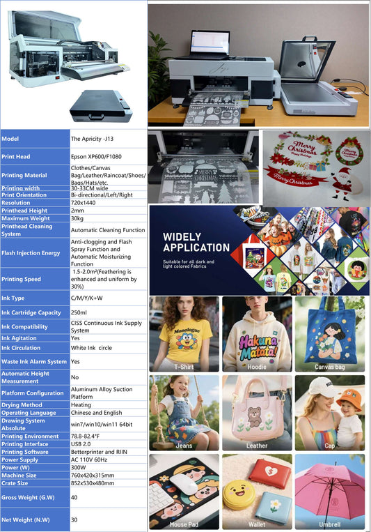 In Stock Jay's J13 Apricity a 13 inch DTF Printer with Oven xp600 printhead Starter Pack