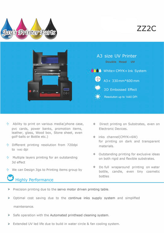 Pre-order ZZ2C 2 head UV printer Flatbed from Jay's Printers