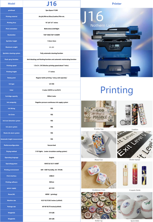 Pre-order J16 Northern Light Jay Signature UV 2 Head F1920 from Jay's printers 16x24 inch 4060 Flatbed Printer